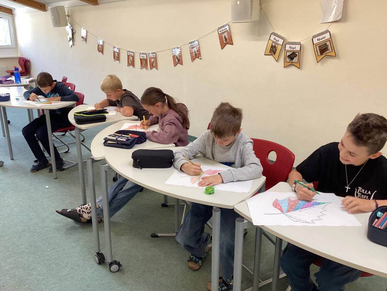 Danach wurden Blätter für unseren Bibliotheksbaum gemalt, die alle mit Lieblingsbüchern der Kinder geschmückt wurden.
