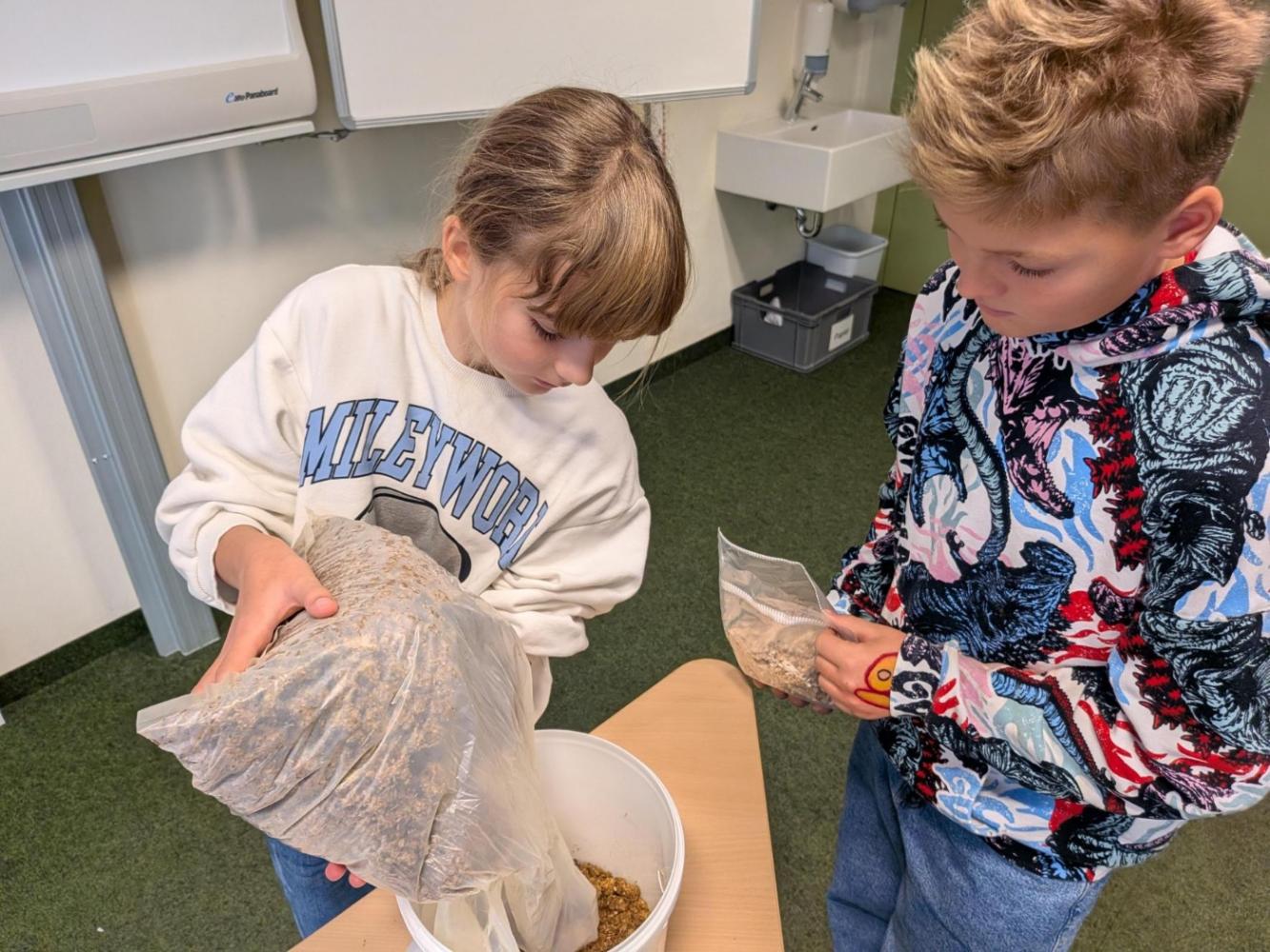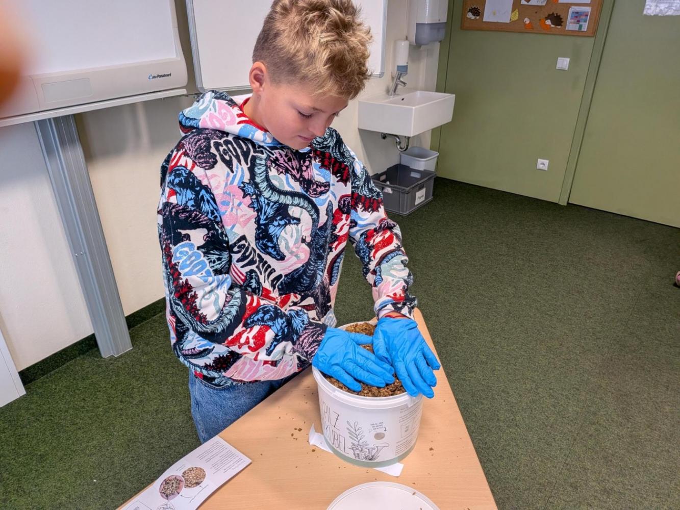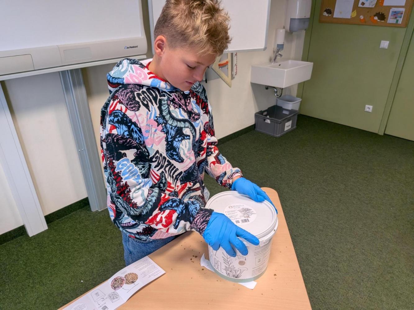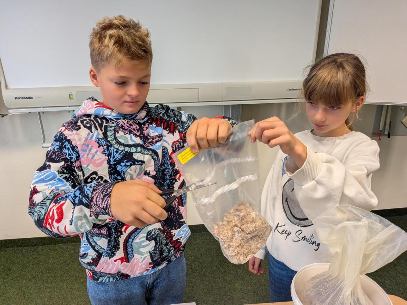 Mit großer Neugier und Begeisterung haben die Schüler:innen der zweiten Klassen ein spannendes Projekt gestartet: Im sogenannten Pilzkübel werden Waldviertler Seitlinge gezüchtet.