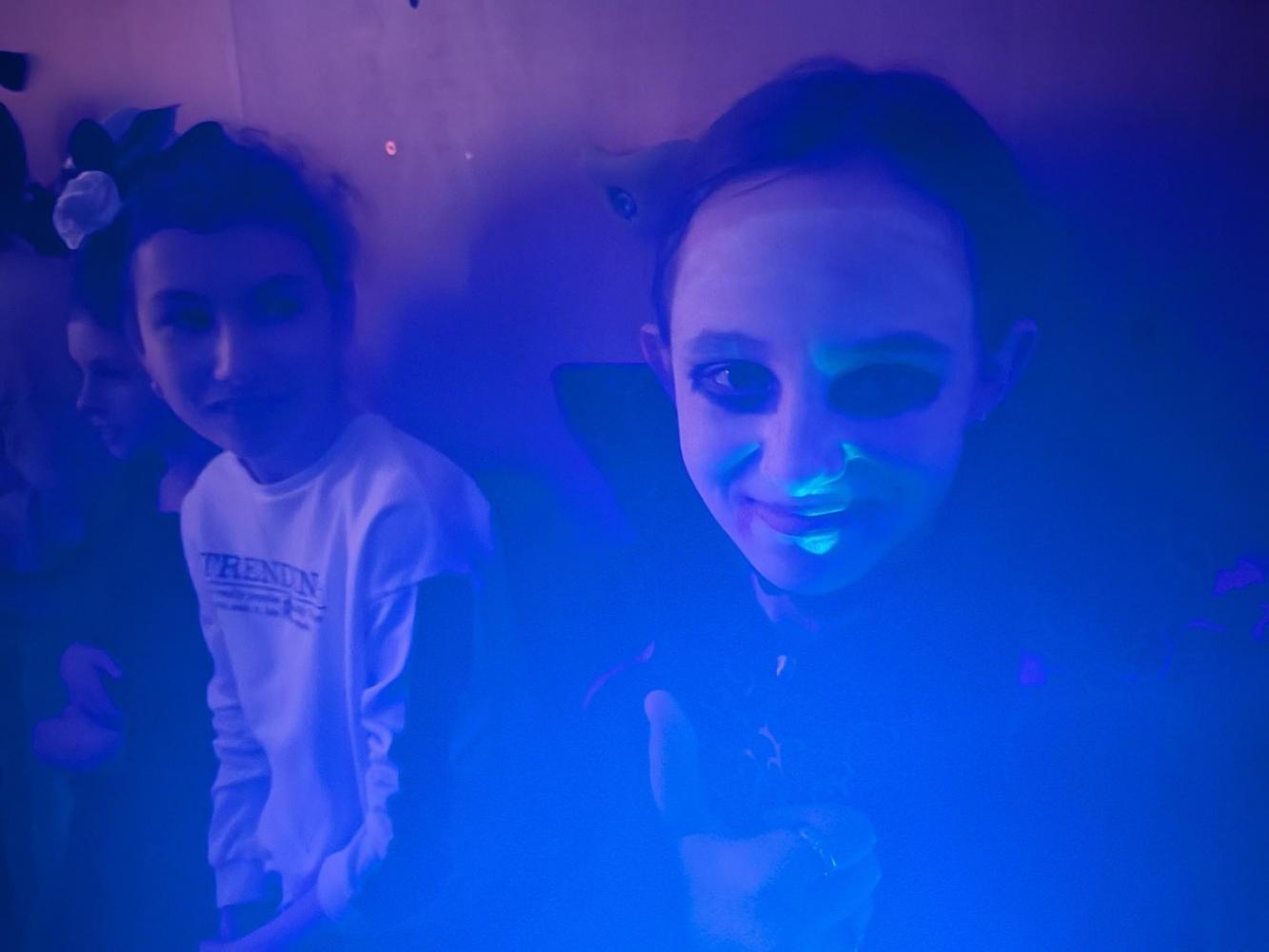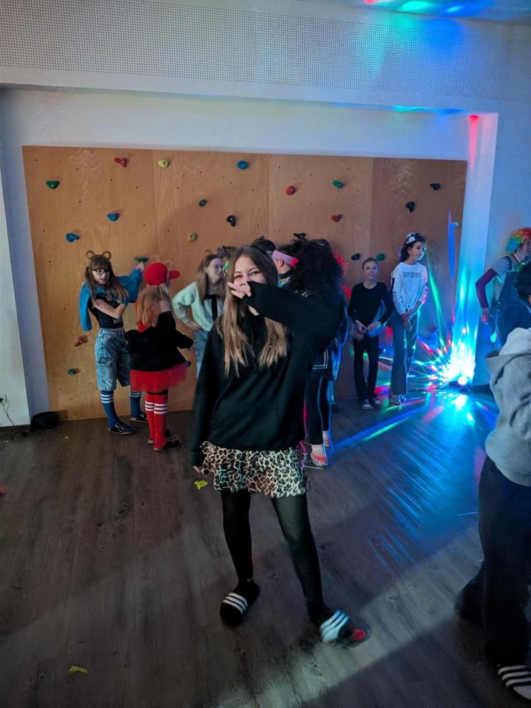 In der 6. Stunde ging es dann schwungvoll weiter: Der Theatersaal verwandelte sich in eine bunte Disco, in der gemeinsam getanzt, gelacht und gefeiert wurde. Die ausgelassene Stimmung, die fantasievollen Kostüme und die fröhliche Musik machten den Abschluss der Faschingsfeier zu einem besonderen Erlebnis.