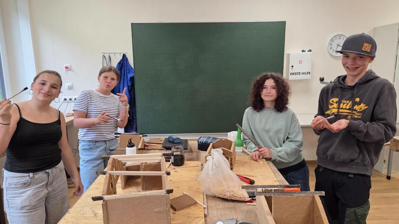 „In den vergangenen Wochen fand das traditionelle Krippenbauen statt und es machte allen großen Spaß. Mit viel Kreativität wurde gemessen, gesägt und geschraubt. Jeder baute dabei seine eigene Krippe und konnte seine eigenen Ideen umsetzen. Es war spannend zu sehen, wie unterschiedlich die Krippen am Ende aussahen. Das Arbeiten machte viel Freude, und alle waren stolz auf ihre fertigen Werke. So kam schon ein bisschen vorweihnachtliche Stimmung auf.“