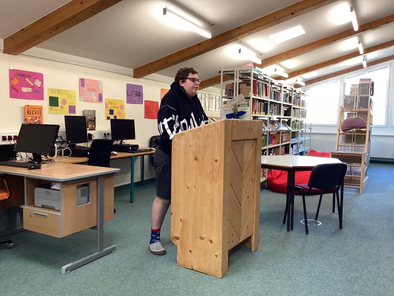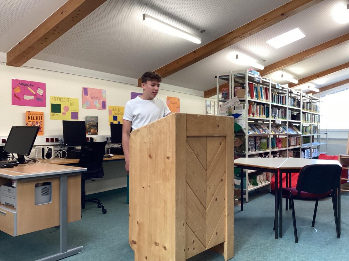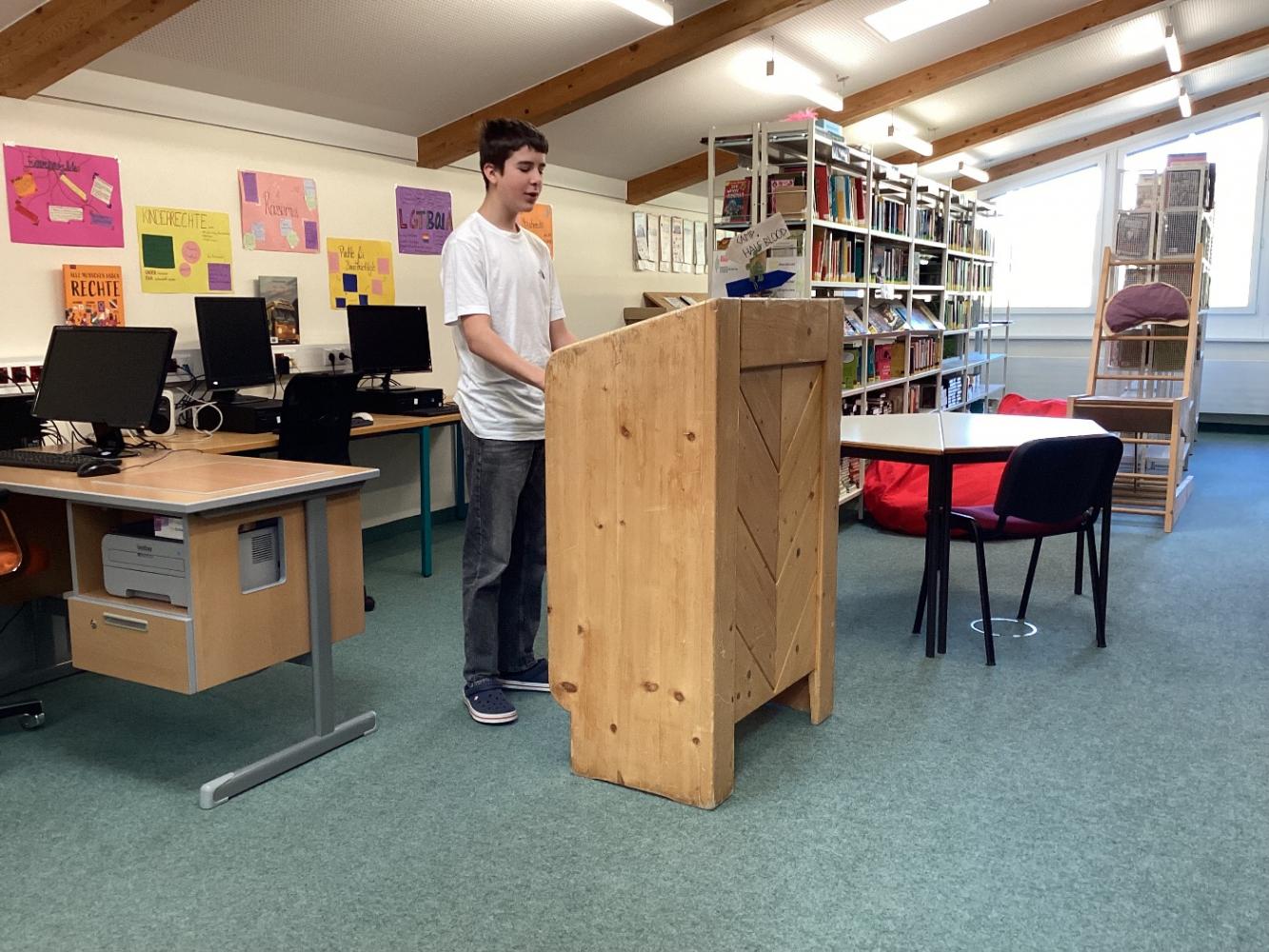 The topics could be chosen freely, and ranged from the environment, to animal rights, and child labour. The most challenging thing was to present the speech in front of the class. With the help oft he teachers and other students they did a very good job, though. We even had some special guests like Ms. Wellezohn, or our headmaster Mr. Thöni who listened to a few oft he speeches.