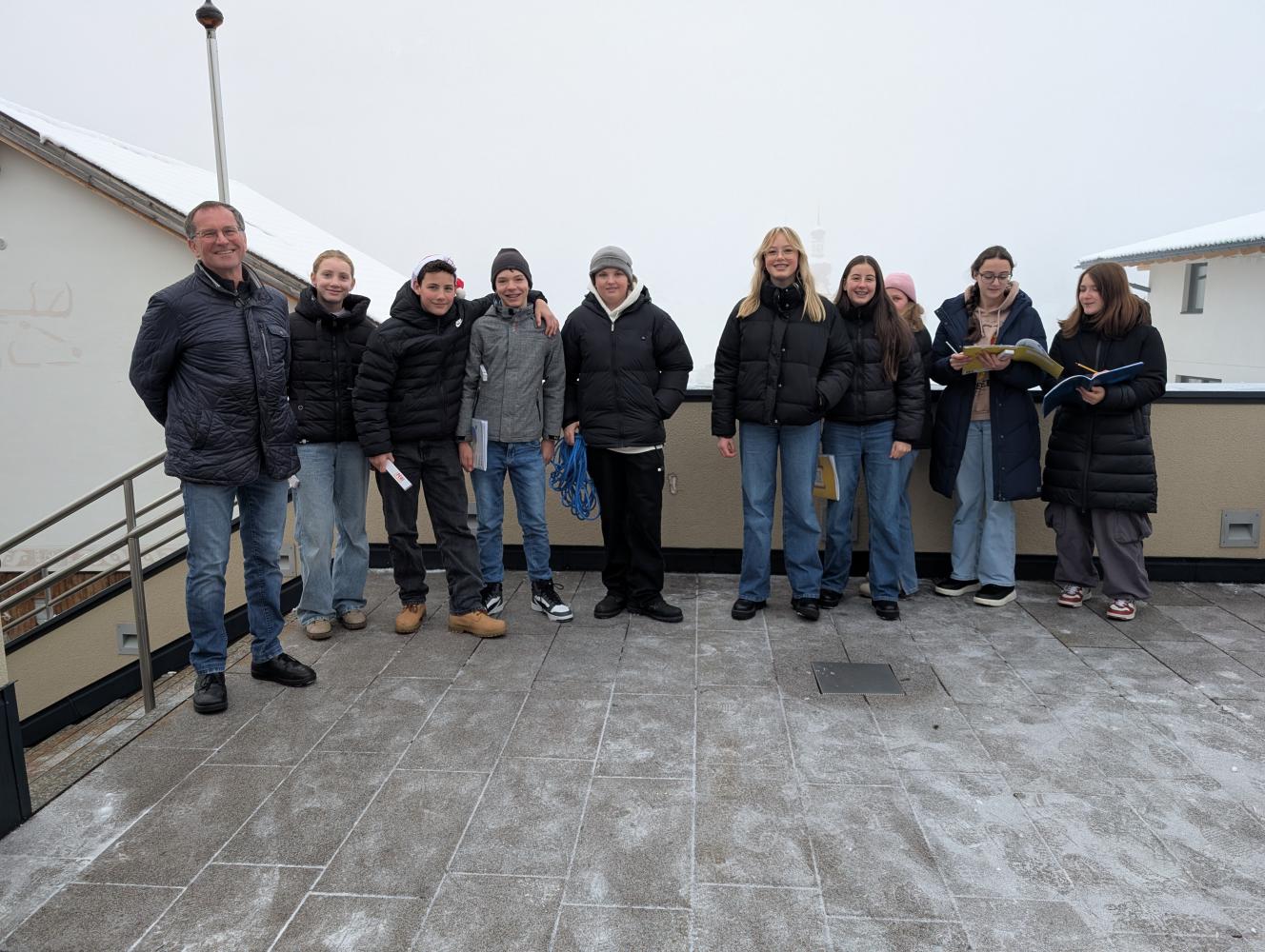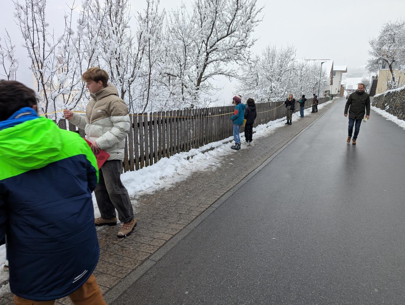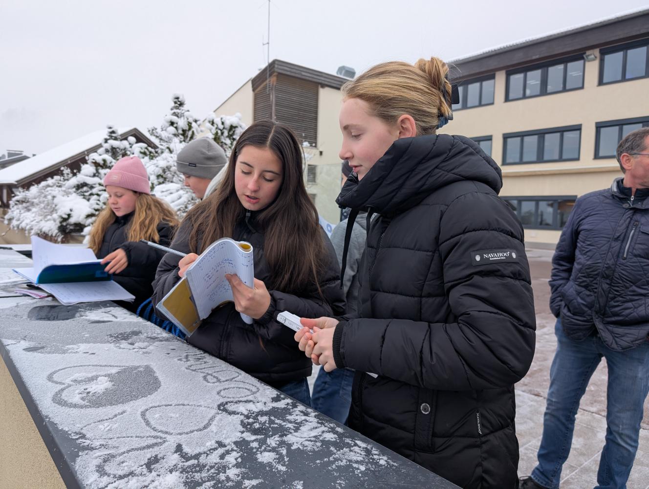 Schnee, Eis und Minustemperaturen können unsere Schüler*innen der 3a und die Lehrer Tobias und Christian nicht davon abhalten den Unterricht zwischendurch nach draußen zu verlagern.