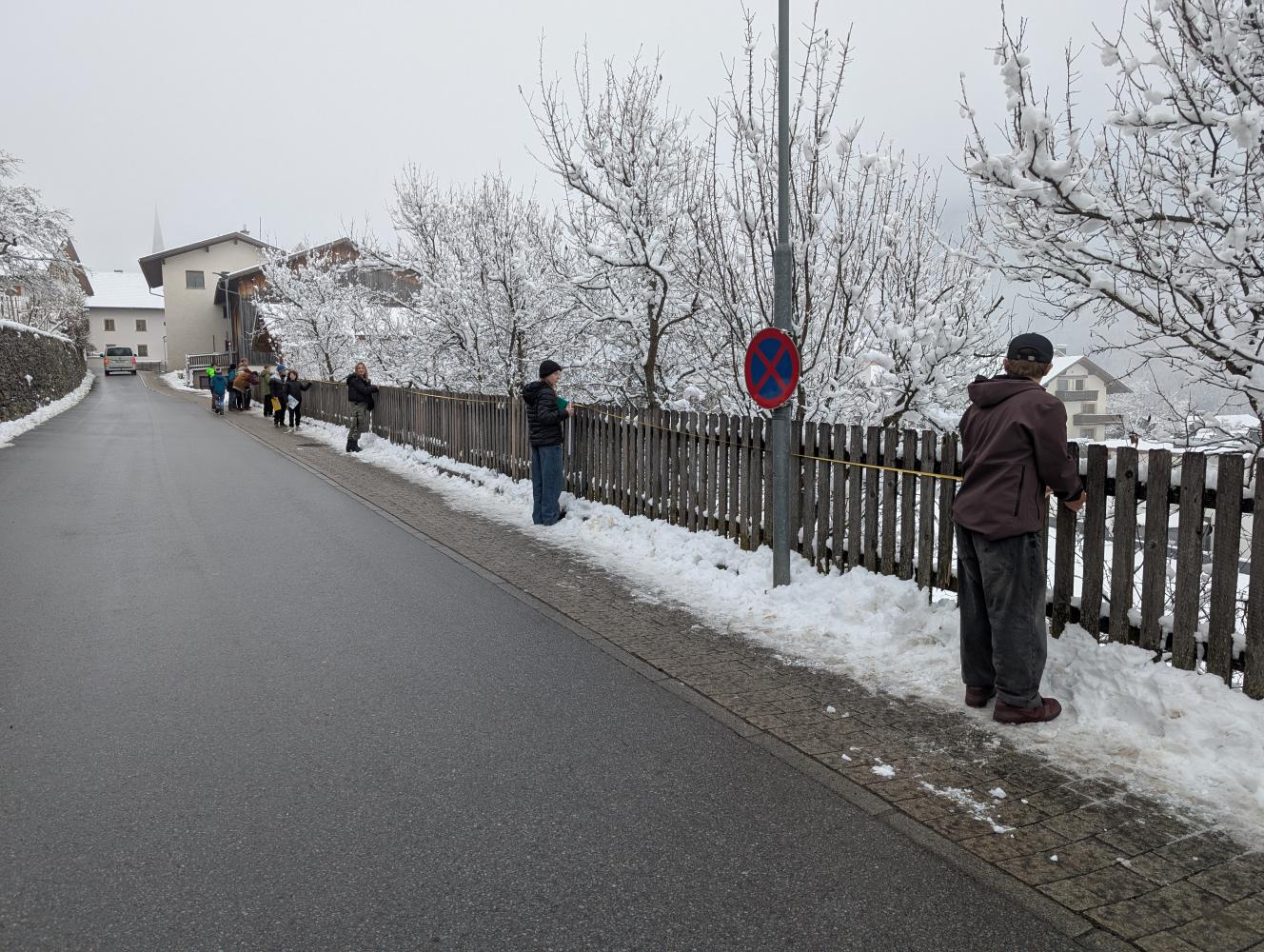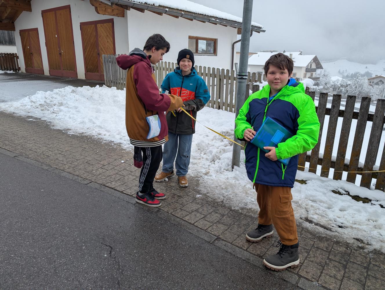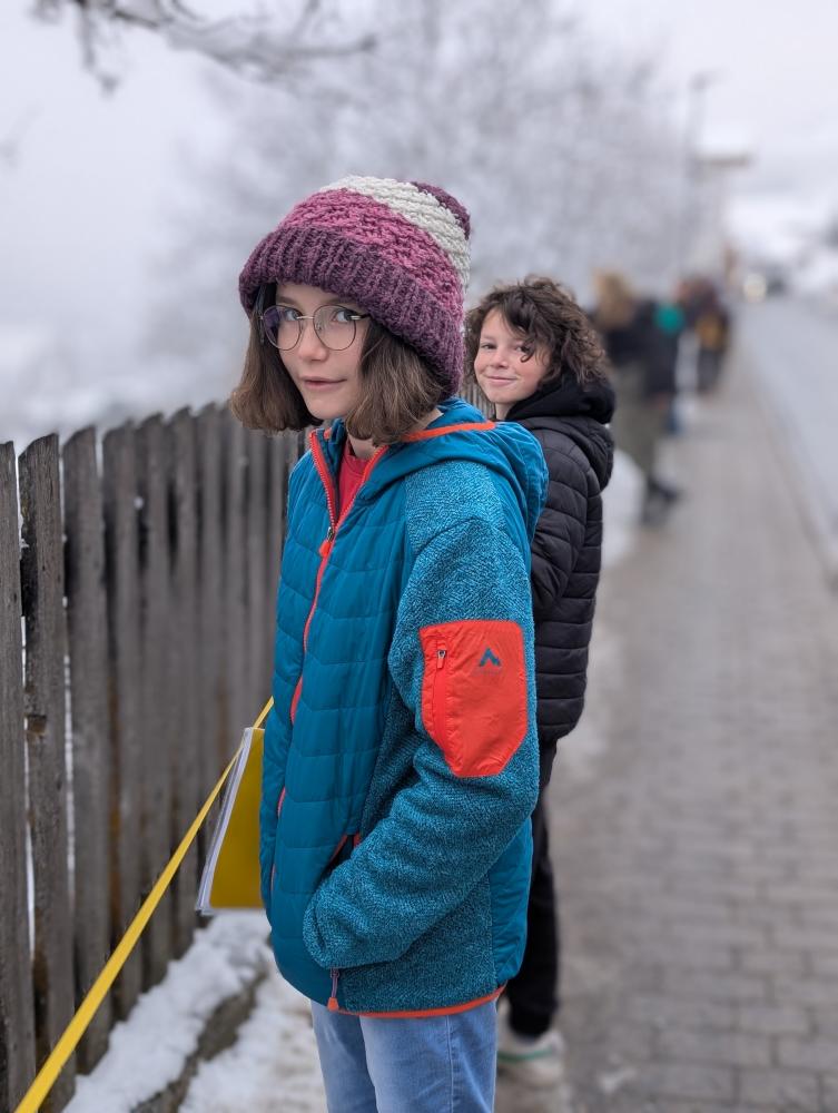 Schnee, Eis und Minustemperaturen können unsere Schüler*innen der 3a und die Lehrer Tobias und Christian nicht davon abhalten den Unterricht zwischendurch nach draußen zu verlagern.