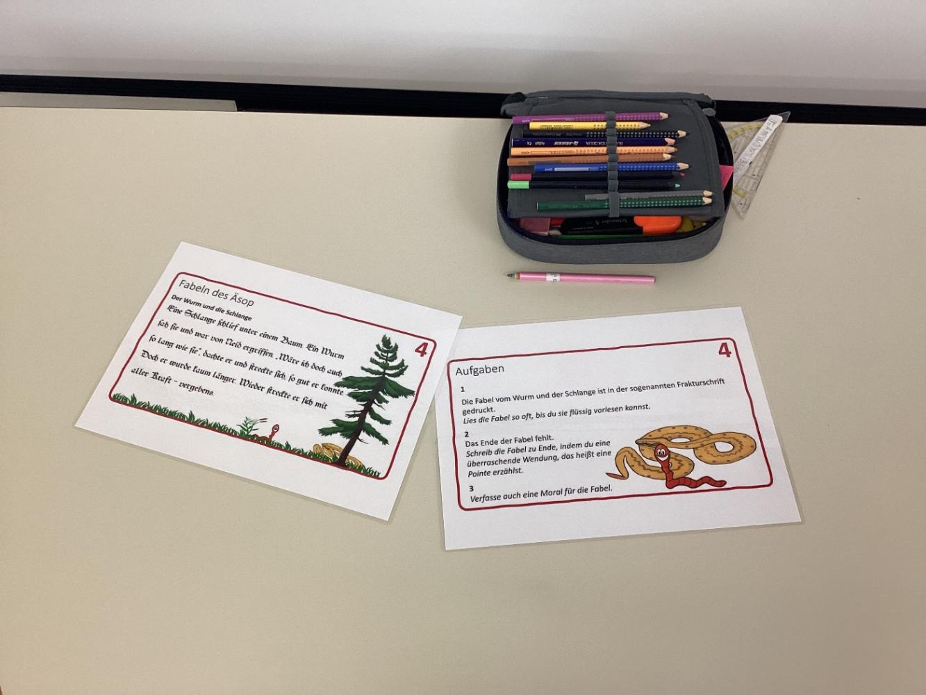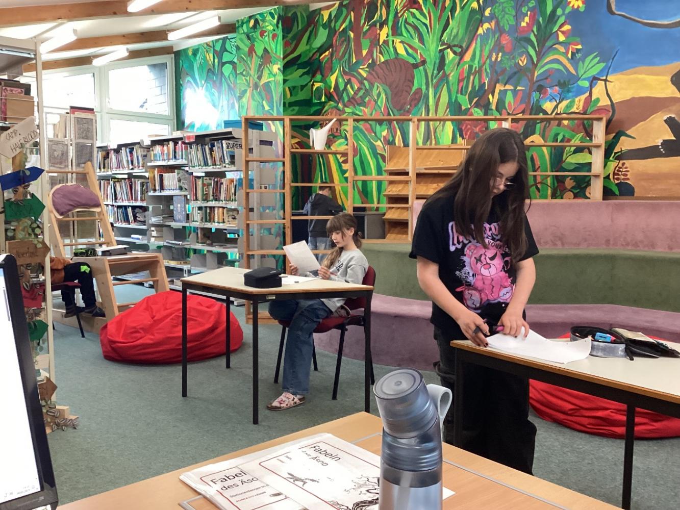 Auf fünf Stationen konnten sich die Kinder verschiedene Fabeln durchlesen, und Arbeitsaufträge dazu erledigen. Manche Aufgaben waren da gar nicht so einfach. Es mussten nämlich eigene Geschichten geschrieben werden, und auch der Aufbau einer Fabel wurde genau unter die Lupe genommen.